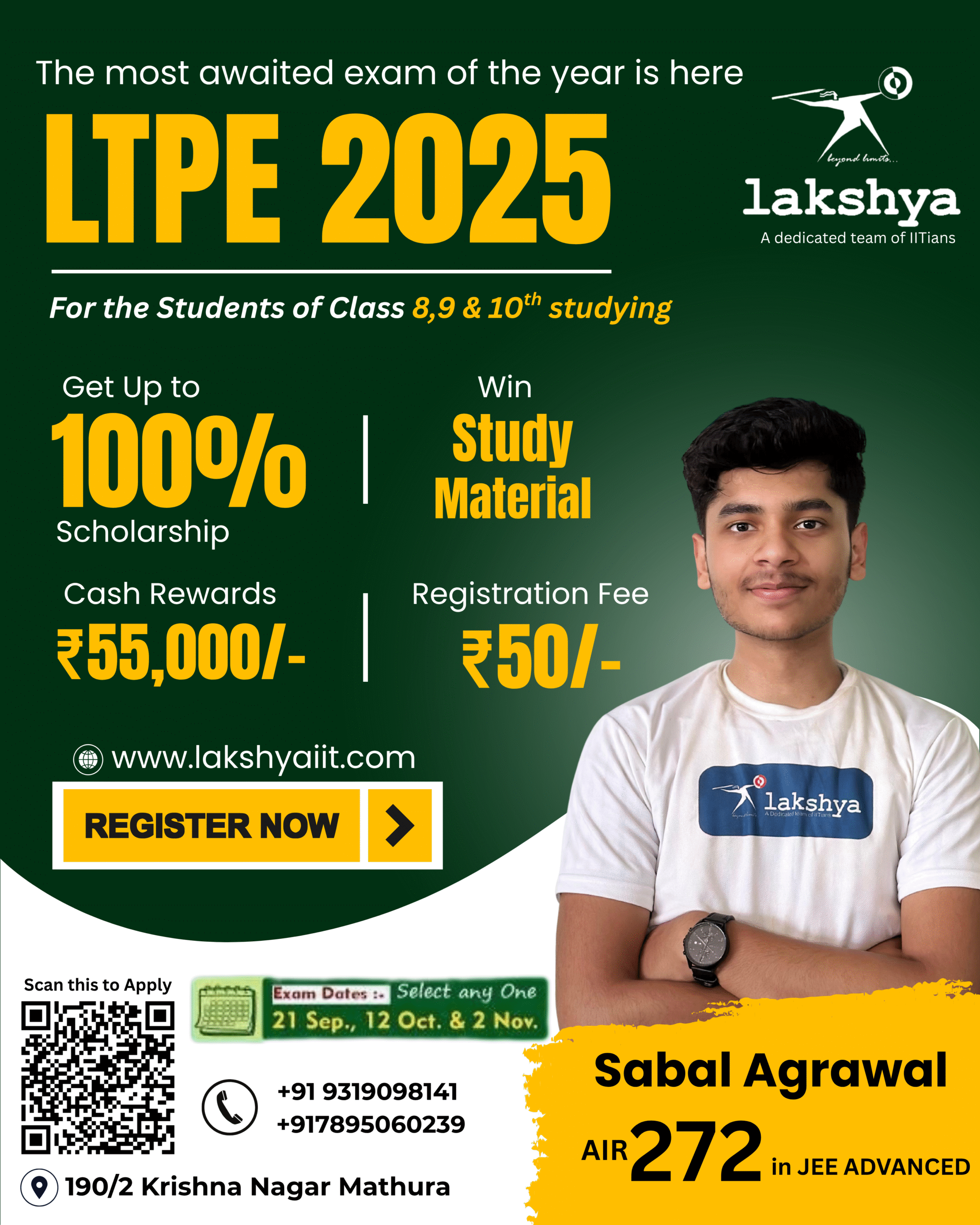 लक्ष्य में, हम आपको कुछ बड़ा कर दिखाने के लिए तैयार करते हैं, क्योंकि हम जानते हैं कि लक्ष्य के करीब से, बिना उसको पार किये वापस आना सबसे ज्यादा पीड़ादायक होता है। किसी भी असंभव कार्य को सिर्फ मेहनत और ध्यान केन्द्रित करके ही प्राप्त किया जा सकता है। याद रखिये बड़े निर्णय ही हमें बड़ी सफलता दिलाते हैं। तय आपको करना है कि आप क्या चाहते हैं और फिर अपनी चाहत को अपना लक्ष्य बनाएं। कहते है कि मौका हमेशा मजबूत दिमाग का साथ देता है, इसलिए बेहतर से बेहतर करें, बेहतर से बेहतर चुनें और मौका हाथ से न जाने दें। हम आपके भीतर एक मजबूत विलक्षण और विश्लेषणात्मक दिमाग विकसित करने के लिए कड़ी मेहनत करते हैं, और ये हम सिर्फ़ एक प्रतियोगिता में सफलता के लिए नहीं बल्कि असाधारण कौशल, जुनून, साहस और मूल्यों के साथ जीवन जीना सिखाने के लिए करते हैं। हम आपको आपके उज्जवल सुन्दर भविष्य के लिए एक ठोस आधार प्रदान करते हैं, जिसकी शुरुआत होती है IIT (Mains+Advance)/NEET में आपकी पहली सफलता के साथ…..